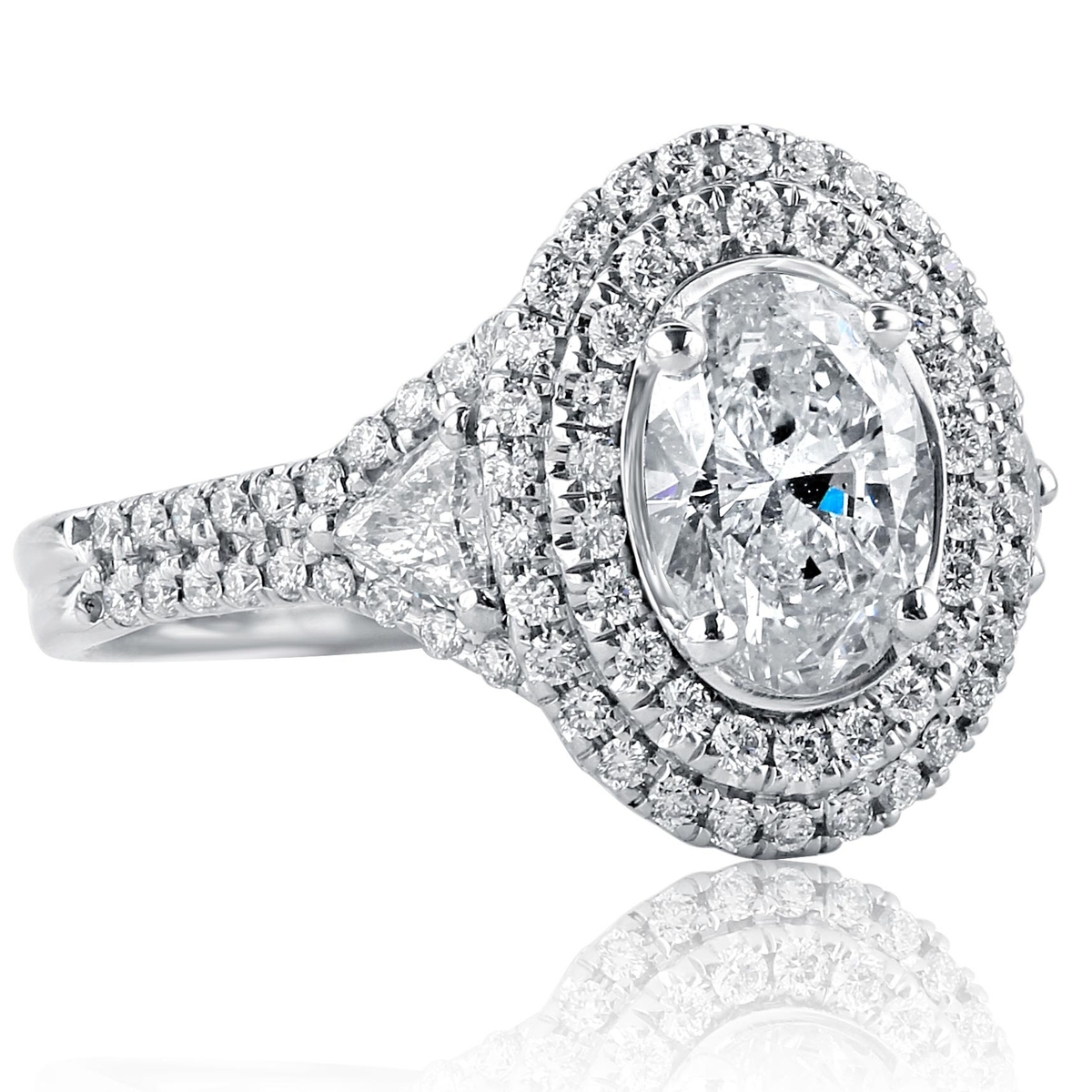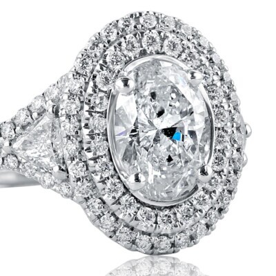 Double Halo 1.84CT Oval Cut Trillion Side Diamond Engagement Ring 18k White Gold