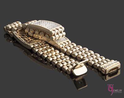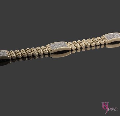 Men's 1.95 Ct ID Natural Diamond Flexible Bracelet 14k Yellow Gold 42.4 g 8.5"