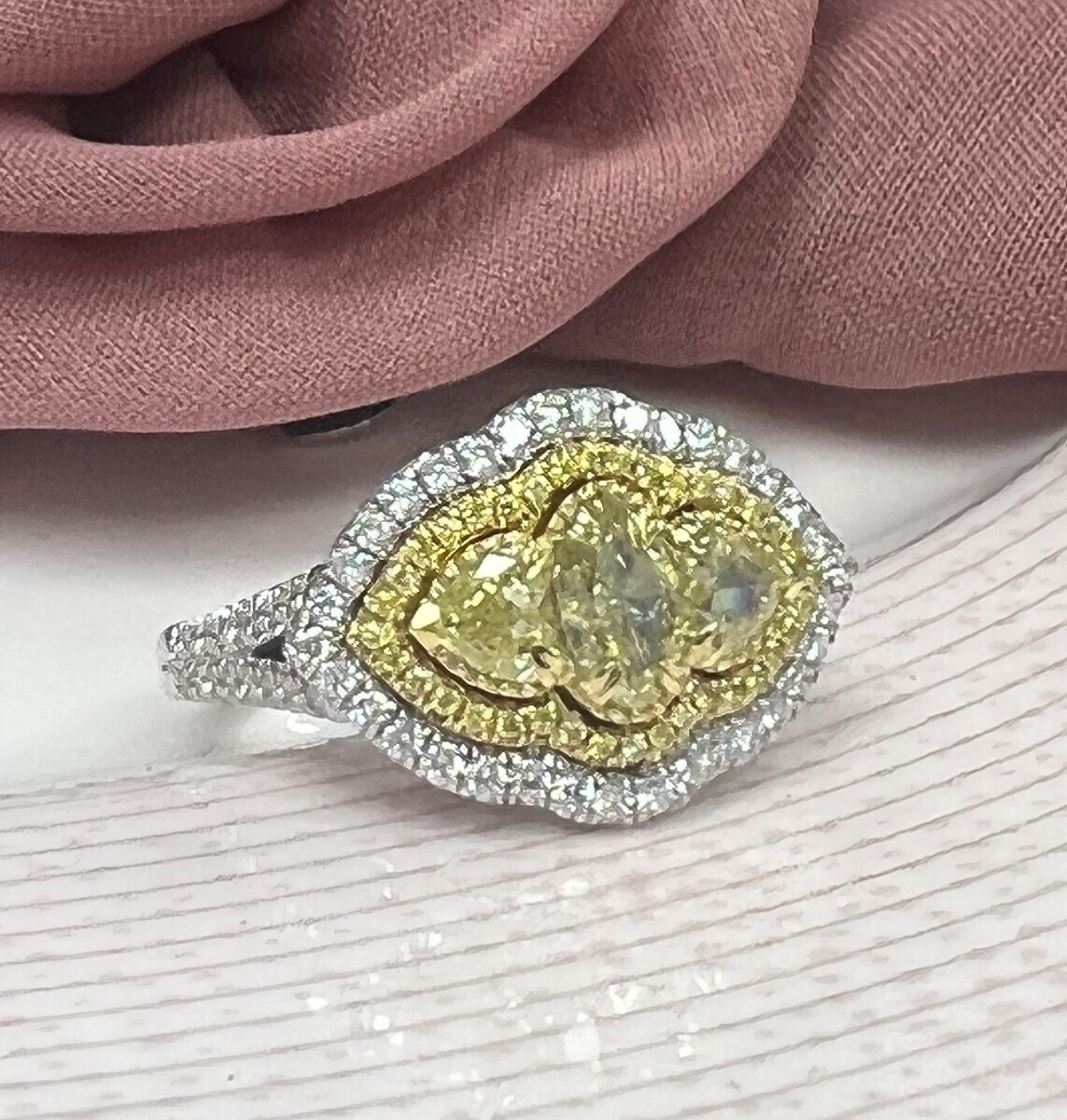 1.66 CT Oval Cut Yellow Diamond Engagement Ring 18k White Gold