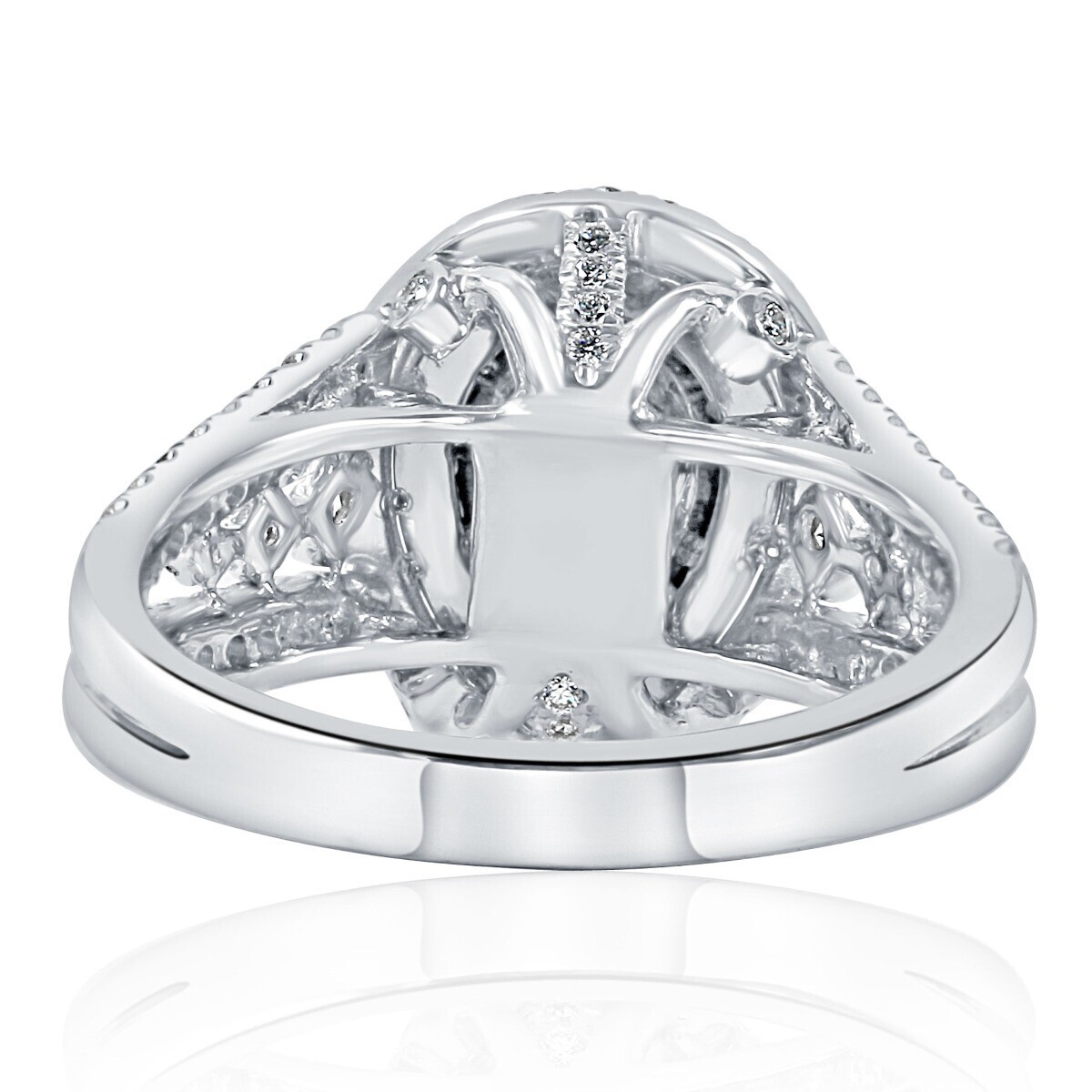 Art deco design diamond engagement ring showcases a 0.78 carat pear cut natural diamond center surrounded by a double halo of glittering colorless round cut diamonds in micro pave setting. Additional diamonds line the three row split shank with graduated diamonds adding an extra beauty to the design. Handcrafted of 14-karat white gold and completed with a high polish finish. It's a perfect way to say- I Love You - with this gorgeous diamond ring. The total carat weight is 1.59 carats. Our products are all hand made with quality and care, in the heart of the diamond district on 47th Street in New York City. Our dedication and commitment to fine work and quality exceeds all others. Since all of our products are handmade in the USA, every piece shares the same level of attention to detail ens