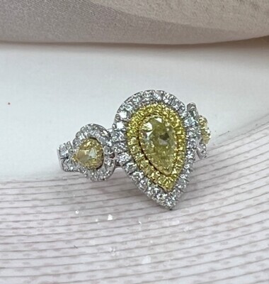 1.80 CT Fancy Intense Yellow Pear Diamond Ring 14k White Gold