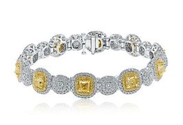 9 CT Luxury Cushion Fancy Light Yellow Diamond Women's Bracelet 14k White Gold