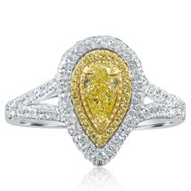 Double Halo 1.08 CT Pear Natural Fancy Yellow Diamond Engagement Ring 18k Gold