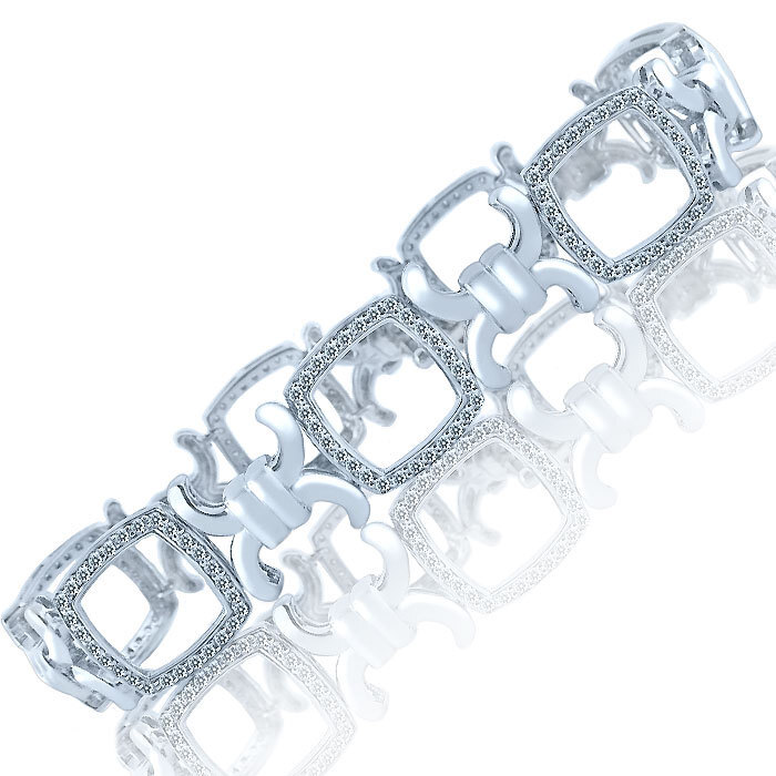 Ce superbe bracelet en diamant est ideal pour un jour ou une nuit. Le bracelet dispose de la conception de liaison xoxo incrustee de diamant a coupe ronde incolore 1,73 carat. Fabrique a la main dans de l'or blanc de 14 carats, en utilisant des techniques italiennes speciales et une finition luxueuse.