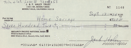 Jack Haley "The Tin Man" autographed Check 1974 Signed Document 1