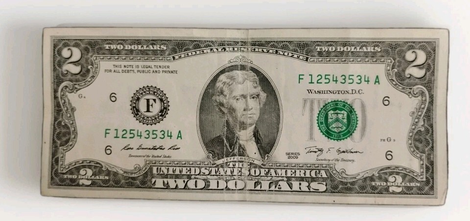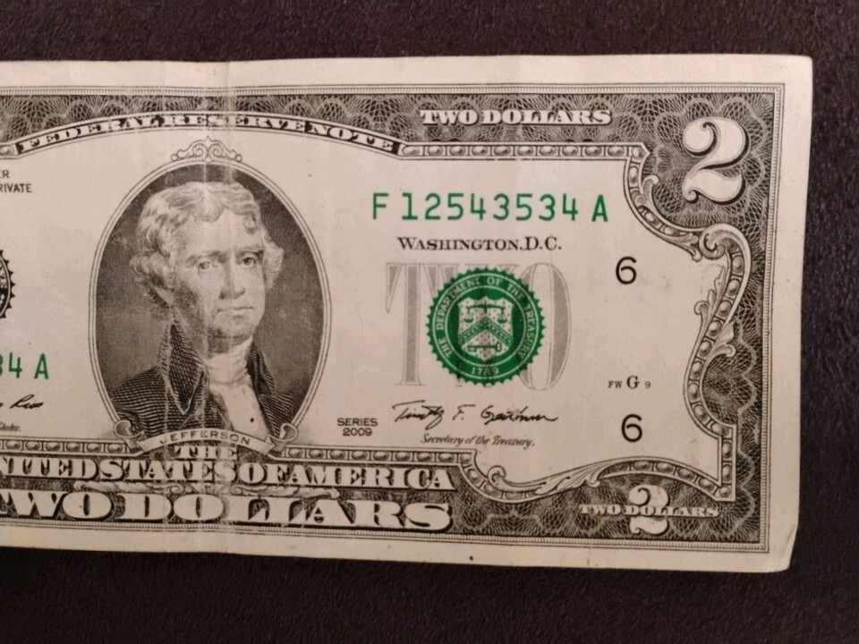 $2 FRN CIR Bill – Repeater F12543534A – Broken Ladder FANCY SERIAL NUM LK!