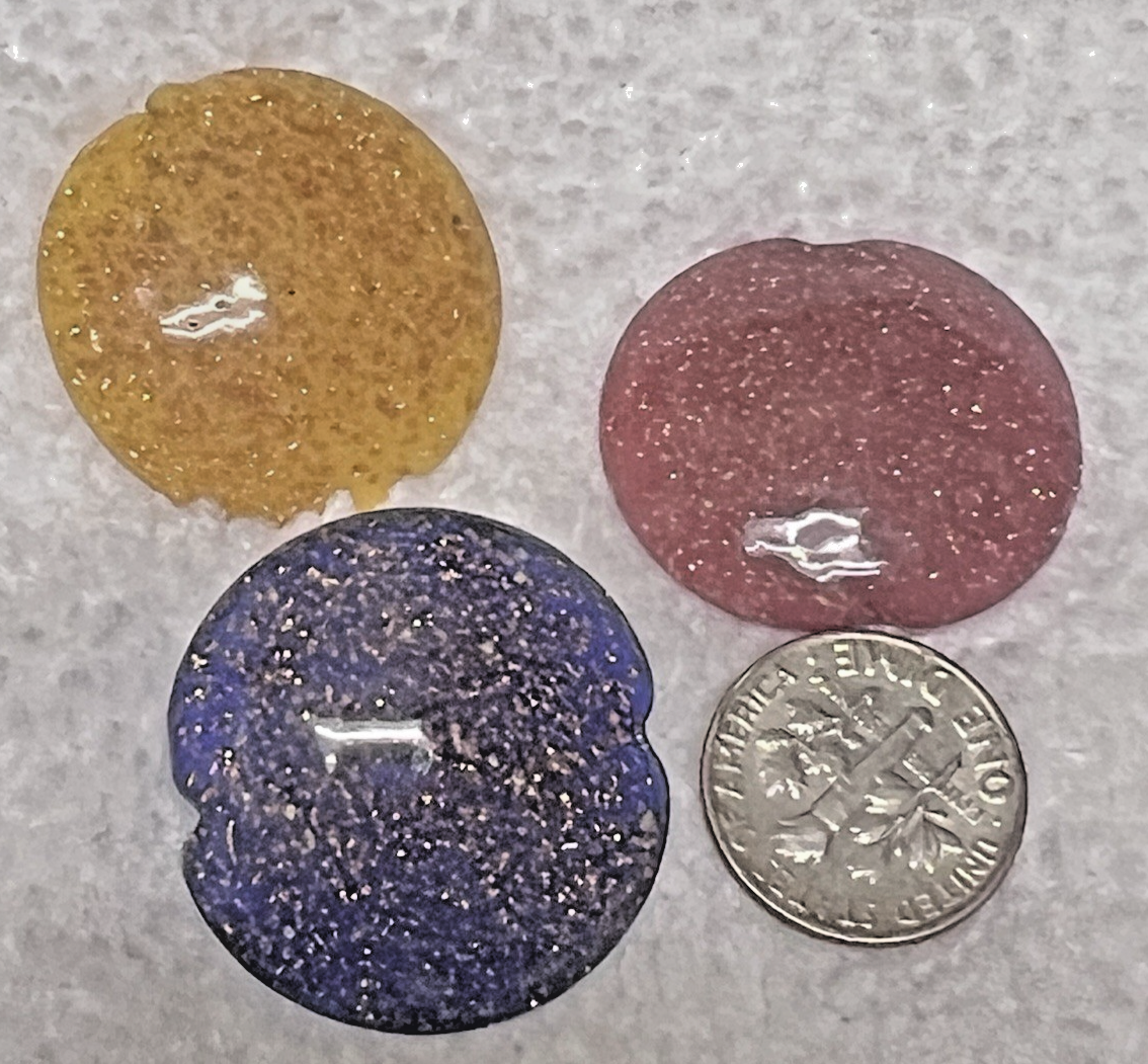 3 Vintage Venetian Glass Beads 1 in Across Round Flat Blue Yellow Pink