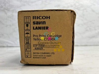 New Genuine Ricoh 828529 Yellow Pro Print Cartridge New Same Day Shipping FOR: Ricoh, Savin, Lanier Pro C7200e,C7210sx,C7210x Listed by: Renee (Sales Team) ?We should care as much about well-doing as well-being. I want to live in a world that values purpose as much as pleasure, contribution as much as contentment, honesty as much as excitement, and justice as much as joy.?~Adam Grant (A positive moment brought to you by Help Resale) Copier Outlet (A Division of Help Resale) Copier Outlet was established in 1993. We buy and sell both domestically and internationally and have wide assortment of copiers, consumable and accessories of all popular brands. All of our copiers are in house and available for your inspection. They all have been tested and rated for functions, cosmetics and overall appearance. Our consumable and accessories selections include toners, imaging units, developers and copier parts such as fax board, fixing unit, fuser unit, roller, cleaning brush, drum blades and etc. For more detailed information on our copiers, consumables and accessories, please feel free to give us a call. We are more than happy to assist you with the pricing and guide you to find the copiers, consumable and accessories you wish to buy. Best Regards, Copier Outlet Sales Team Monday - Friday: 9:00 am to 5:00 pm (PST) Copier Outlet Promo Video - YouTube Video will open in a new windowUsing the App? Paste link into a browser window: [isdntekvideo] All product and company names are trademarks TM or registered trademarks of their respective holders. Use of them does not imply any affiliation with or endorsement by them.