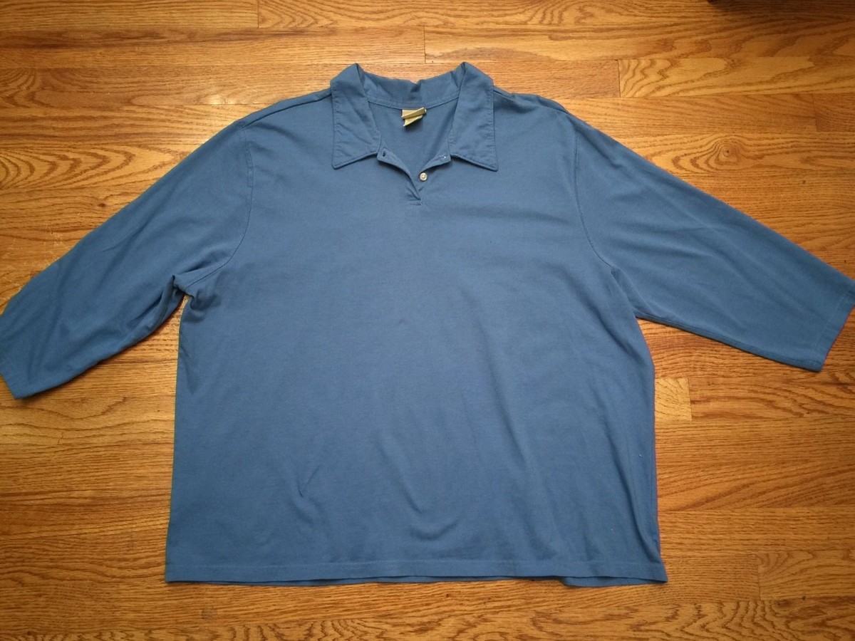 Womens LL Bean Blue Long Sleeve Polo Shirt PERU XXL 2XL