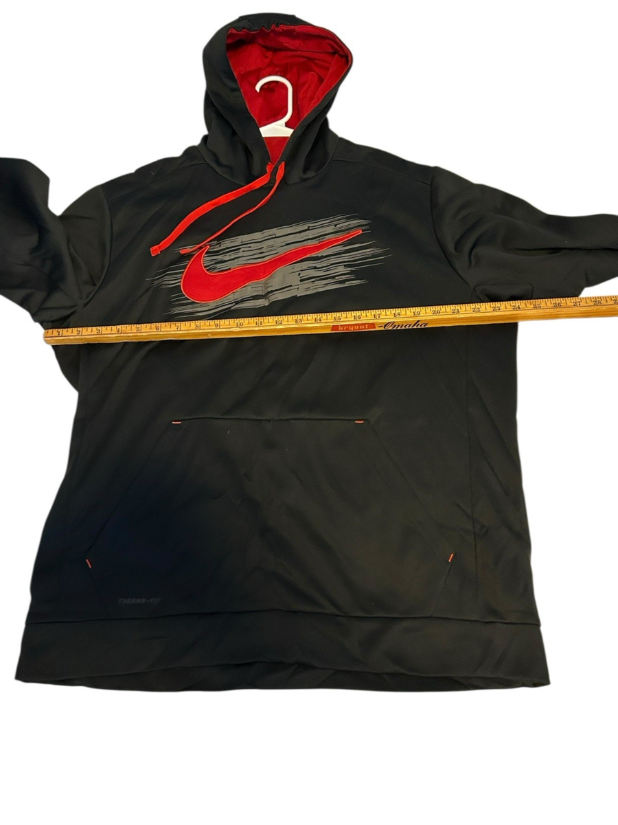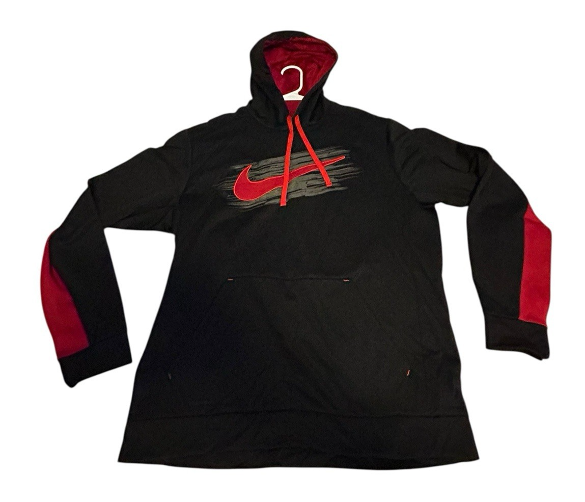 Nike Therma Fit Mens Pullover Hoodie Sweatshirt Black Red Center Swoosh Size XL