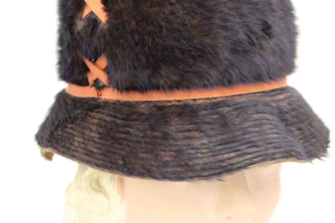 VTG 1960's Miss Carnegie / Hattie Carnegie MOD Bucket Hat Brown Fur Rust S/M