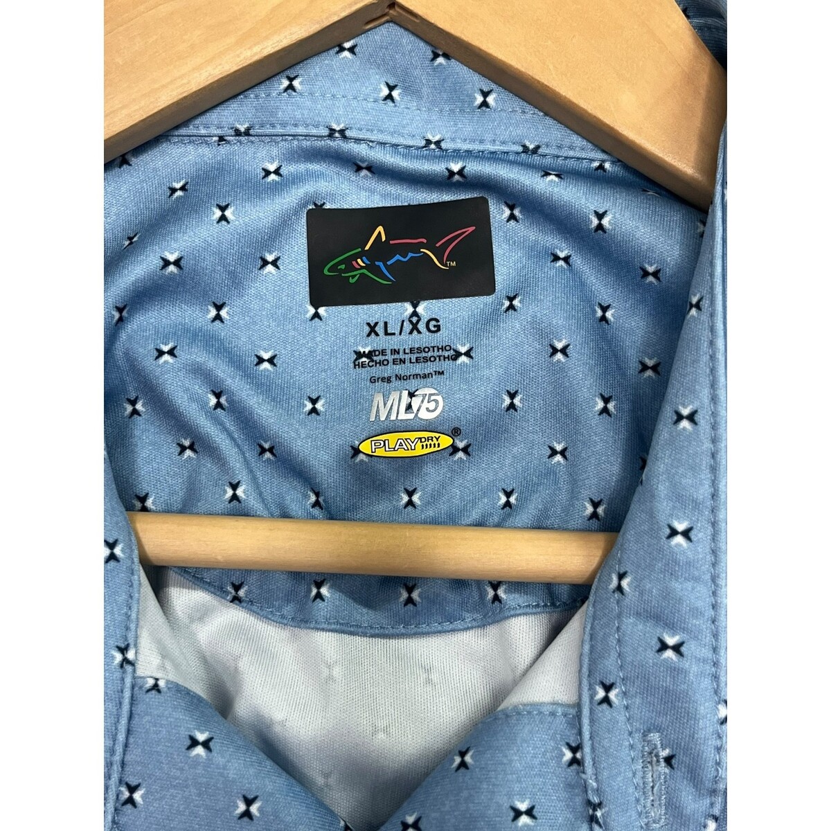 Greg Norman Polo Shirt Mens XL Blue Geometric PlayDry Performance Golf Athletic