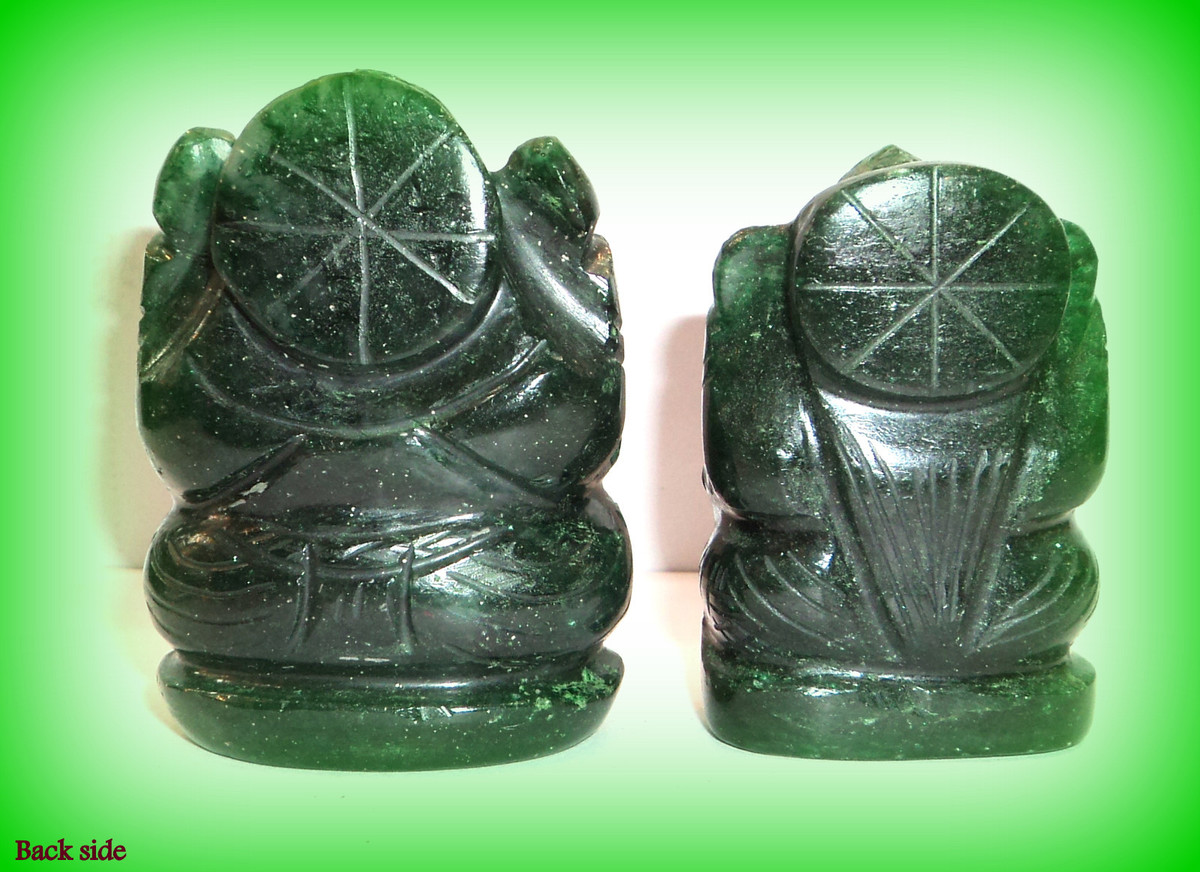 Ganesha is the first son of Lord Shiva and the Divine Mother Parvati. He is worshipped as the god of education, knowledge, wisdom and wealth. In fact, Ganesha is one of the five prime Hindu deities (Brahma, Vishnu, Shiva and Durga being the other four). The large head of an elephant symbolizes wisdom, understanding, and a discriminating intellect that one must possess to attain perfection in life. Lakshmi is the goddess of wealth. Being the consort of Lord Vishnu, the preserver, she is represented as the power of abundance and the goddess of fortune, both of which are equally necessary in the process of preservation. In this Idol,they carved beautifully in Green Jade. Green Jade is related to heart chakra and can attract and enhance love of all kinds It is also a stone of fidelity and gene