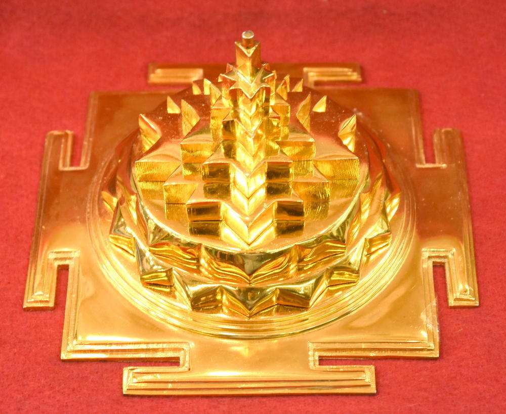 Shree Yantra can be chiseled out of a crystal piece, engraved on crystal, precious stones, on copper or silver metals in plain plans or elevated plans.