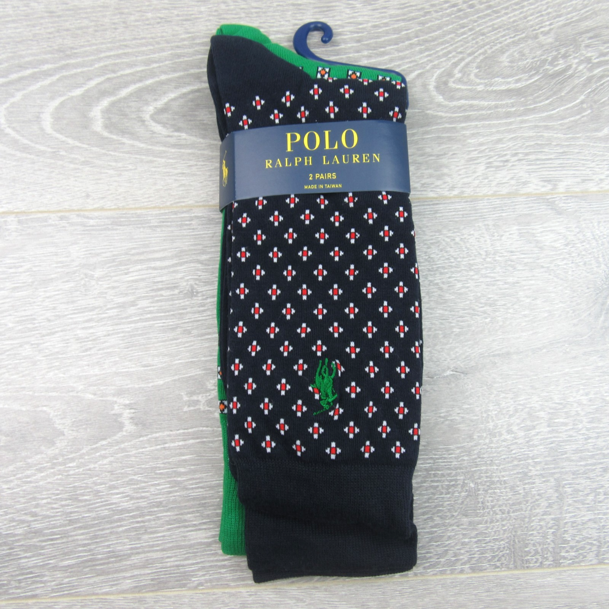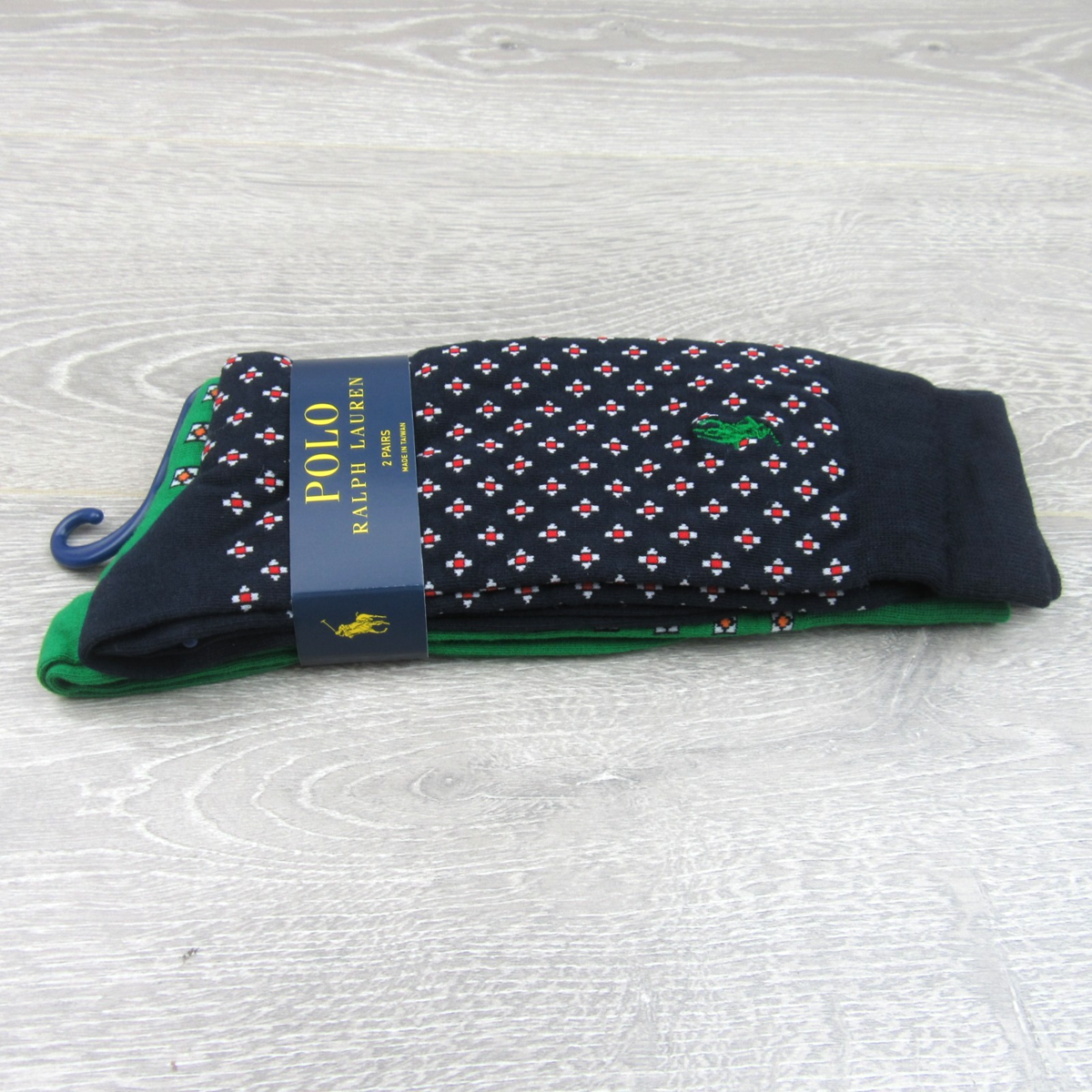 Polo Ralph Lauren Foulard Slack Socks Men's Size 6-12.5 (2 PAIRS) Navy Green NEW