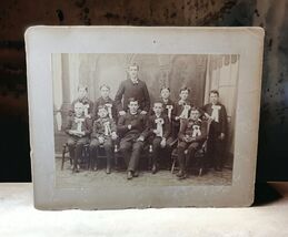 Circa 1890s Cabinet Card Boys School Students Teachers Class Photo 8x10"