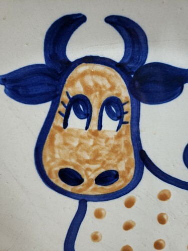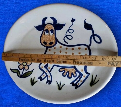 UP FOR SALE: Polka Dot Cow by LOUISVILLE Pottery Large Oval Platter VTG Discontinued Folk Art