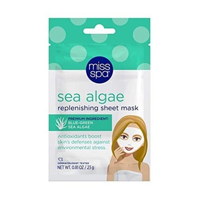 Miss Spa Facial Sheet Sea Algae Replenishing Face Mask Lot of 2. Your skin?s anti-pollution back up team. Miss Spa Sea Algae Replenishing Sheet Mask is packed with antioxidants, vitamins and minerals from sea algae, aloe leaf and niacinamide to give your skin the protection it needs to bounce back. Sea algae is a natural source of polysaccharides that help restore the skin?s barrier function and protect it from free radical damage and environmental stress. Aloe leaf and niacinamide hydrate and repair the skin?s surface so both you and your skin can be stress free! Convenient sheet mask format takes the mess out of masking. Simply apply to clean skin for 20 minutes, remove, and pat excess serum into skin. No need to rinse!
