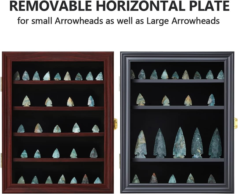 ANTI-SLIP DESIGN AND REMOVABLE SHELVES - The Arrowhead display rack has 5 detachable shelves, Remove Middle Shelves ensure a display of different sizes Arrowheads, and each shelf has grooves to prevent the Arrowhead from sliding.This design holds the Arrowheads more securely and can withstand your ever-growing collection, also allows your Arrowheads to show at a displaying angle.