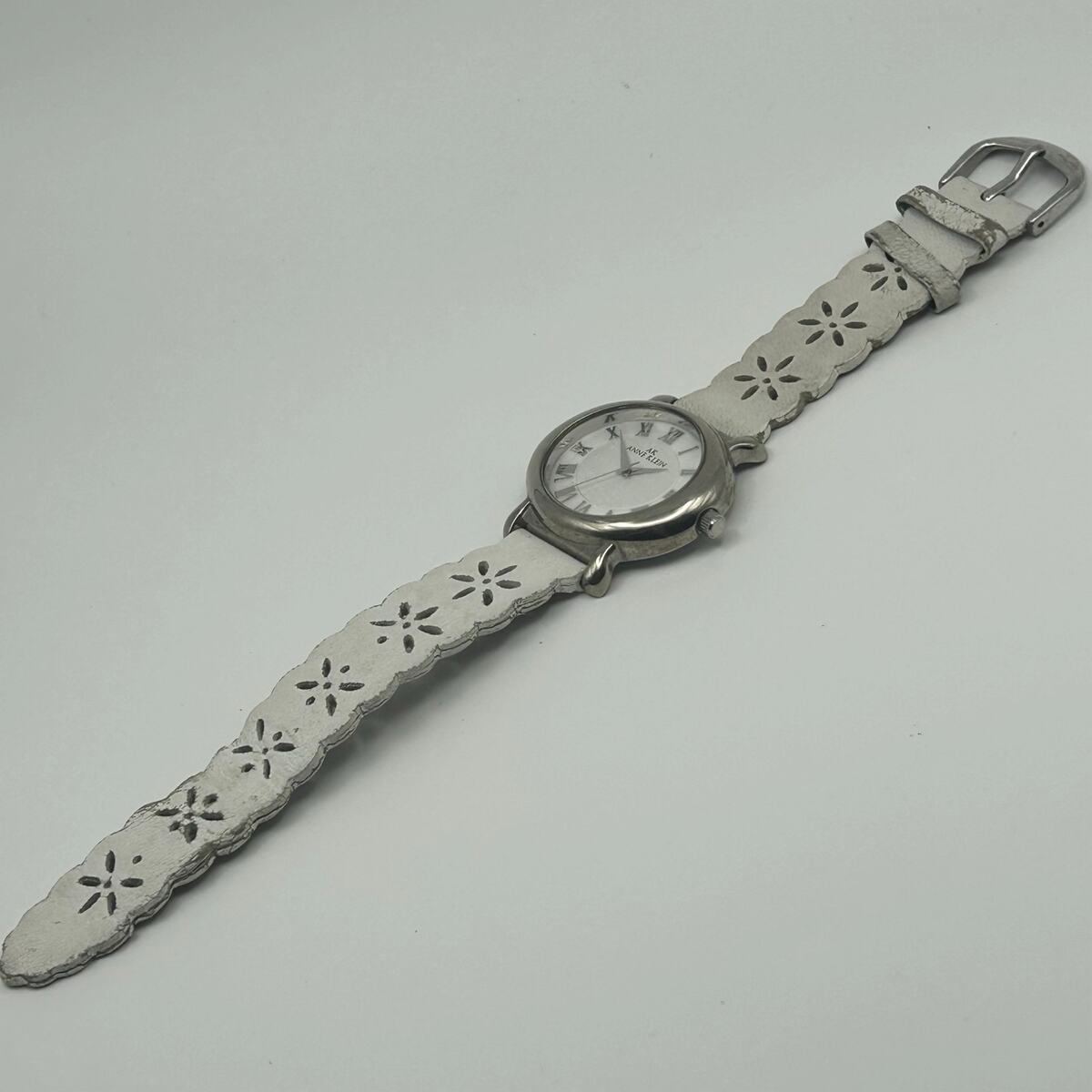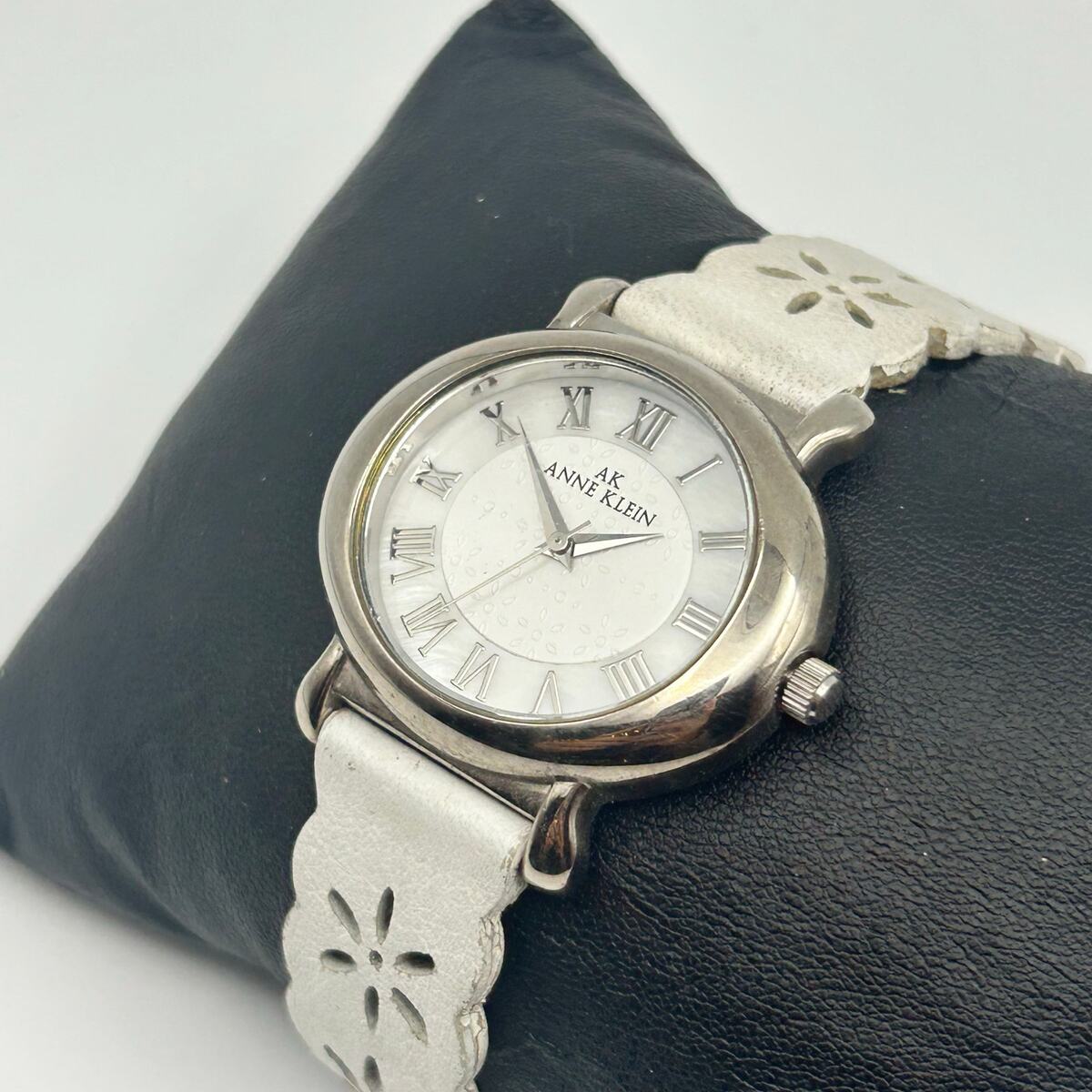 Anne Klein Women’s Silver Tone White Leather Watch, 36mm Working New Battery