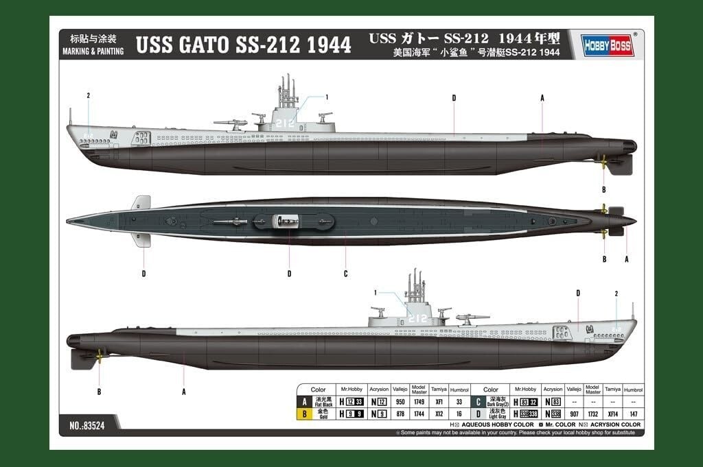 USS Gato SS-212 Submarine US NAVY 1944 1/350 Scale Model Kit HobbyBoss