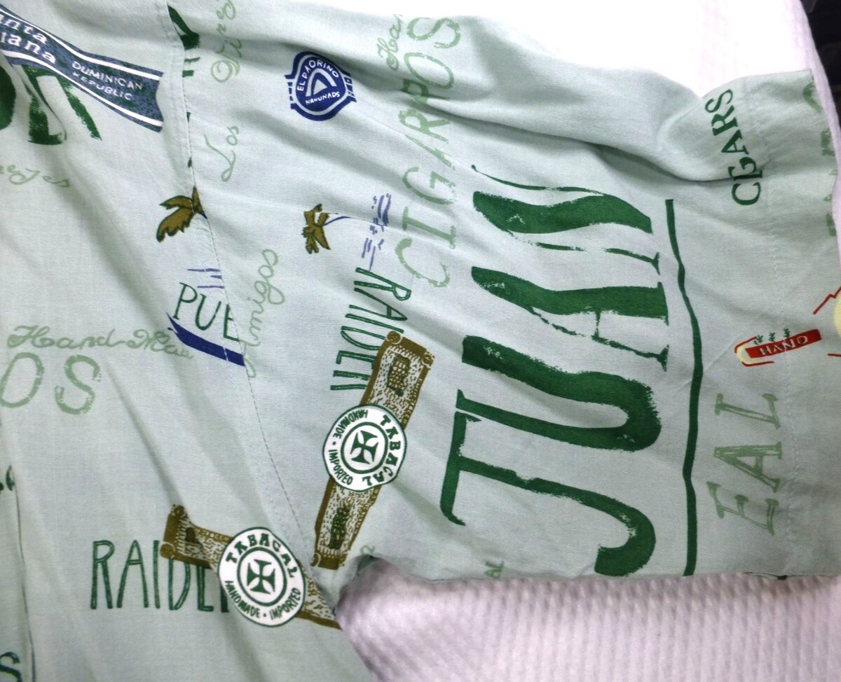 Allan Raider 2000 XL Mens Button Up Shirt All Over Cigars Print Green Rayon