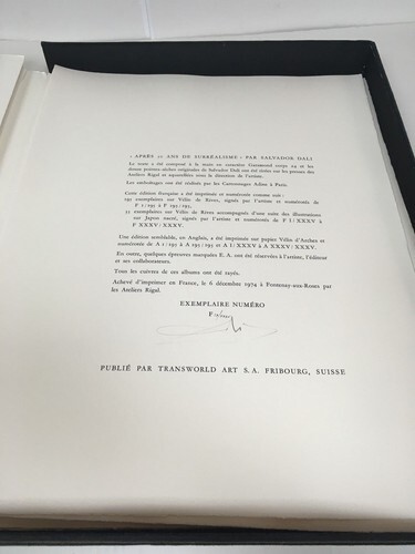 SALVADOR DALI "AFTER 50 YEARS SURREALISM" H/SIGNED JUSTIFICATION PORTFOLIO CASE
