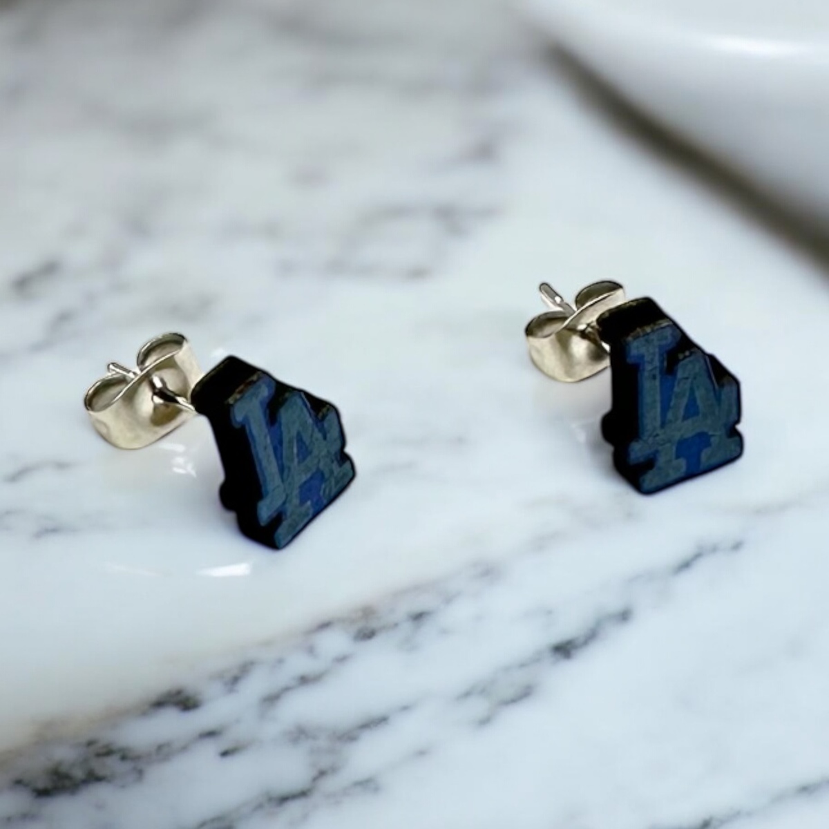 LA Logo Wooden Earrings - Laser Engraved Basswood Dodgers Fan Jewelry