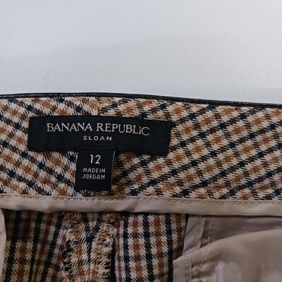 Banana Republic Sloan 493064 Women's 12 Brown High Waisted Plaid Pants (36×25)