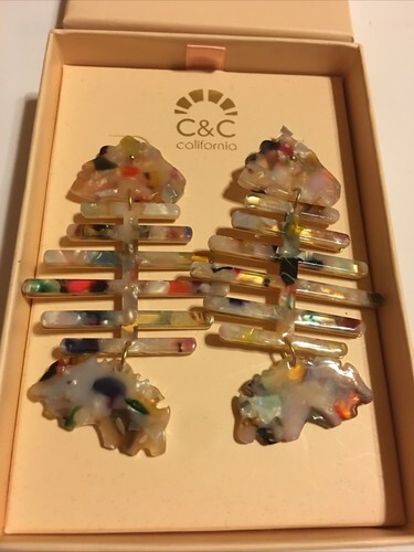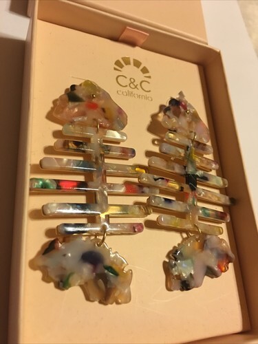 C&C California Tortoise Multicolor Acrylic Resin Fish Earrings Gold Tone new