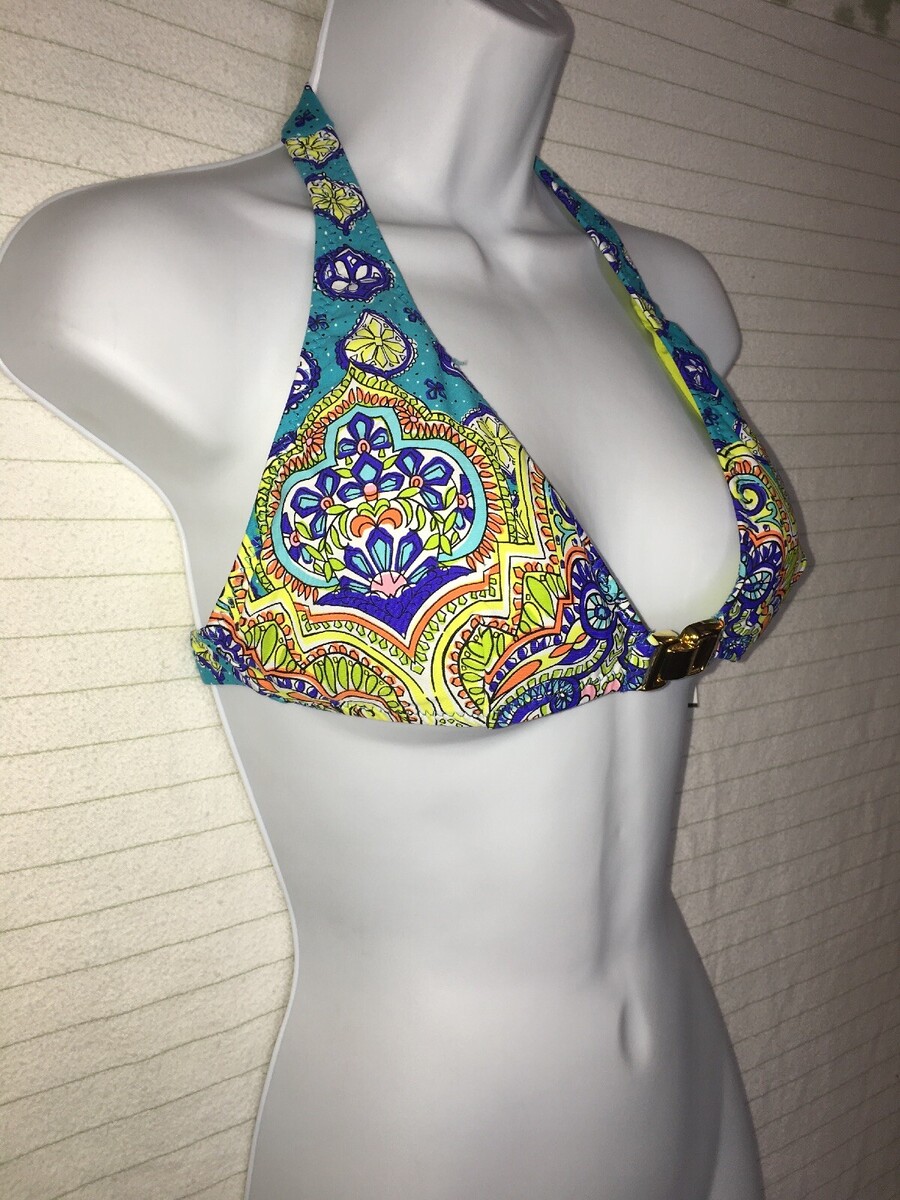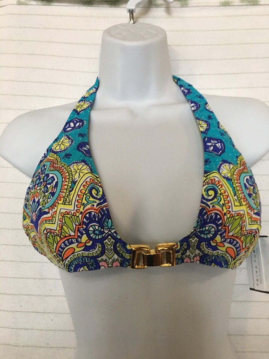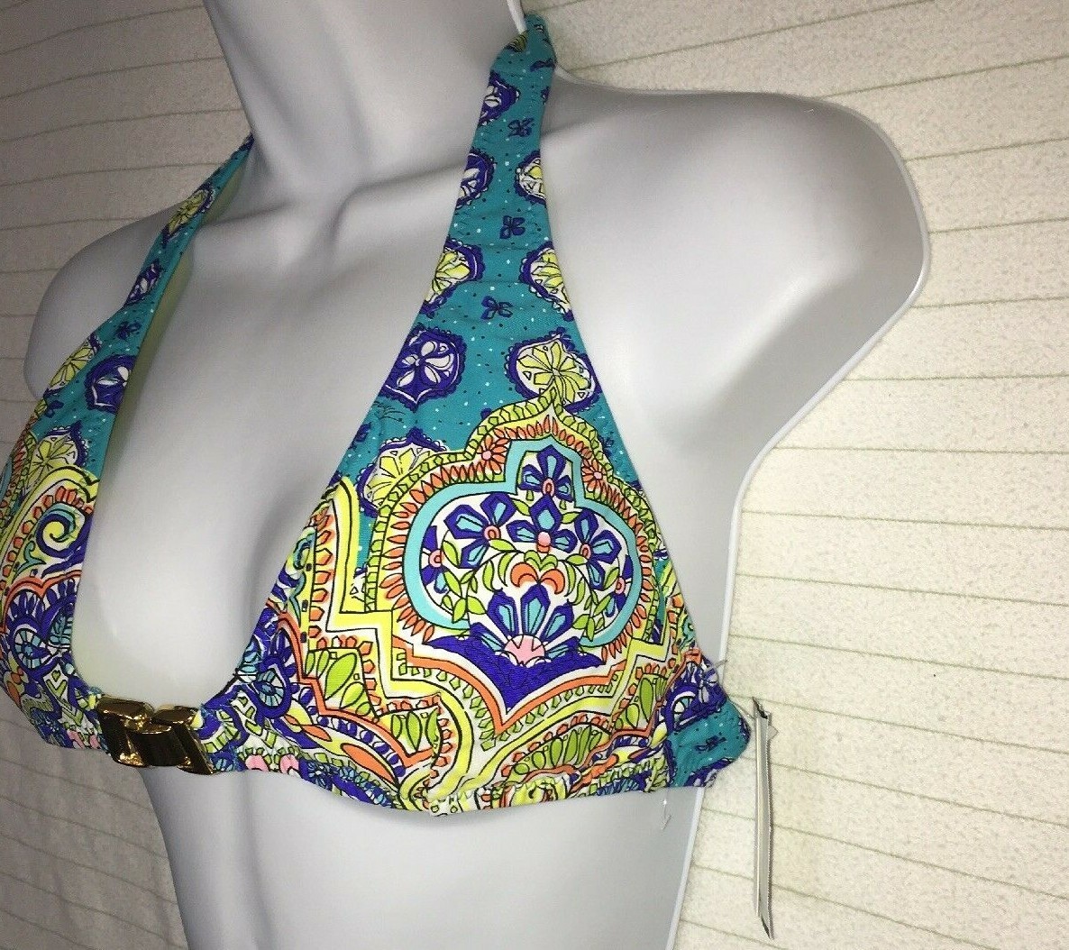 Trina Turk Corsica Halter Top Bikini Swim Turquoise US SZ 8 New $88