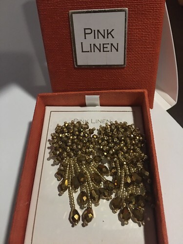 Pink Linen champagne Beaded Explosion Dangle Earrings new in box