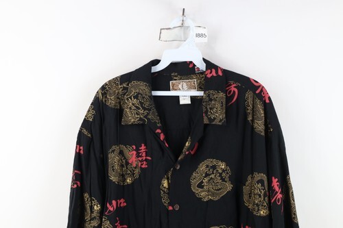 Vintage 90s Streetwear Mens 2XL Rayon Gabardine Dragon Hawaiian Button Shirt USA
