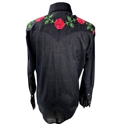 VTG Rockmount Ranch Wear Tru-West Black Red Embroidered Pearl Snap Shirt M
