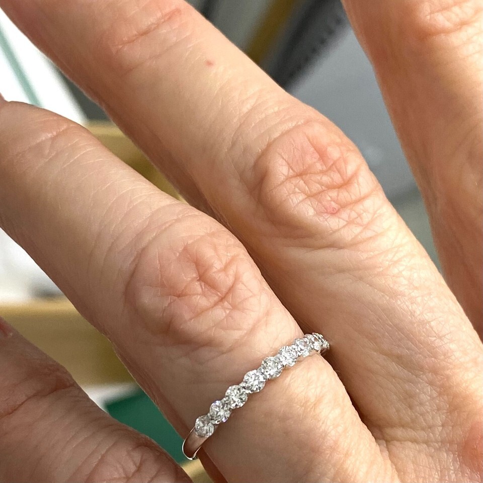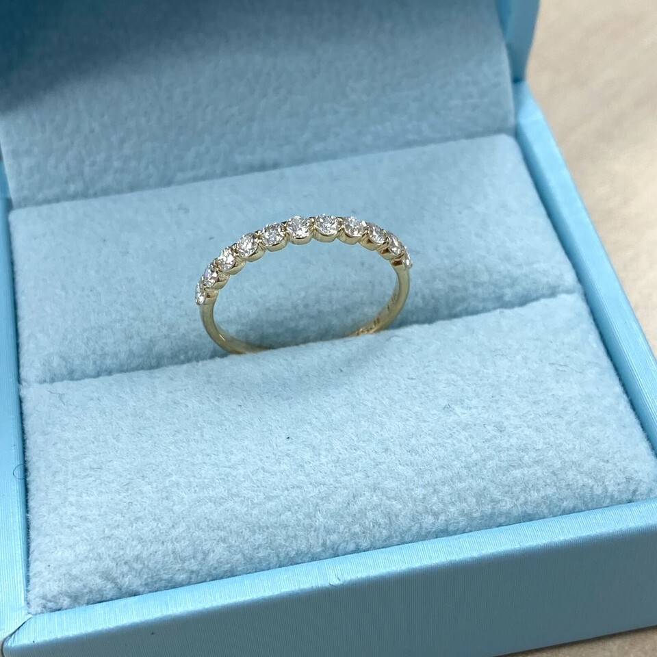 This diamond wedding band is a dazzling expression of love and commitment. Crafted in stunning 14k gold, it features eleven round-cut lab-grown diamonds, each securely held in a pave setting.