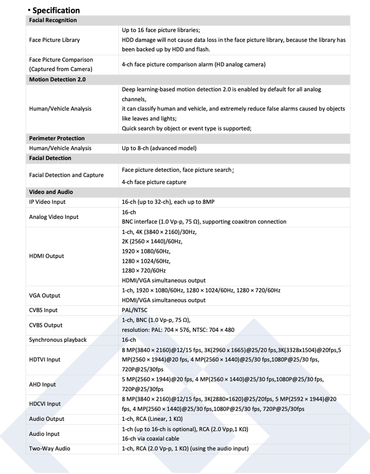Up to 16 channels (analog channel) Motion Detection 2.0