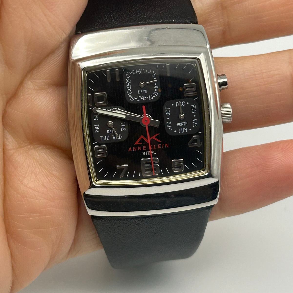 Anne Klein Steel Silver Black Leather Women’s Watch, 29mm Working New Battery added to cart.