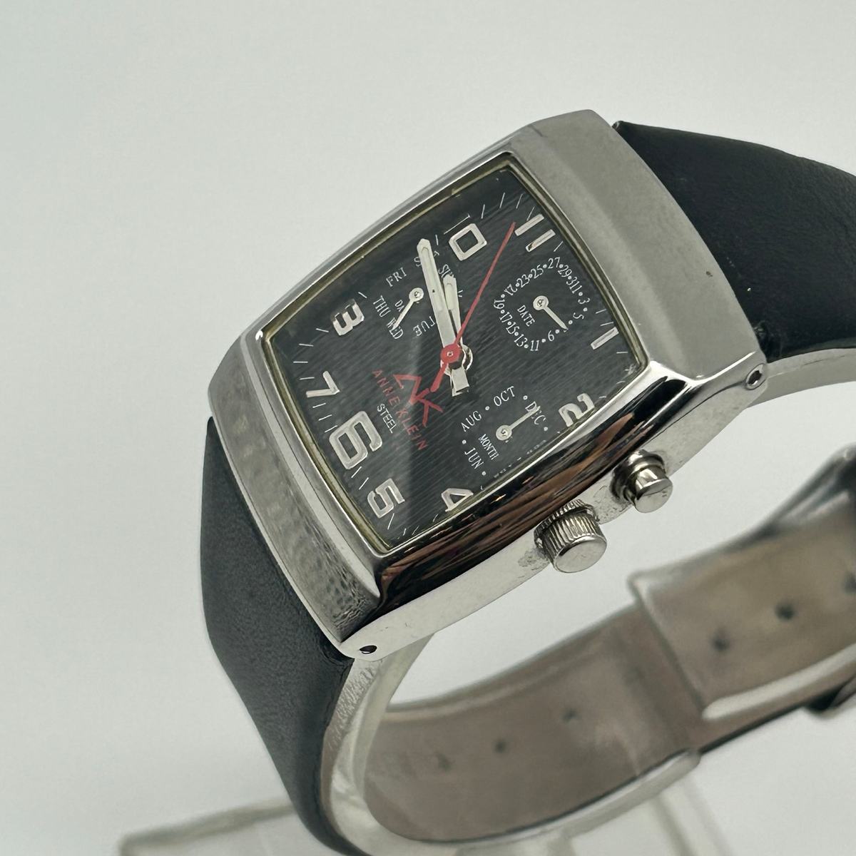 Anne Klein Steel Silver Black Leather Women’s Watch, 29mm Working New Battery