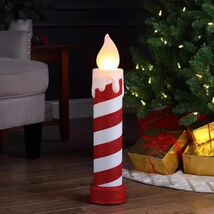 - 24-inch tall blow mold candle with red-and-white striped finish