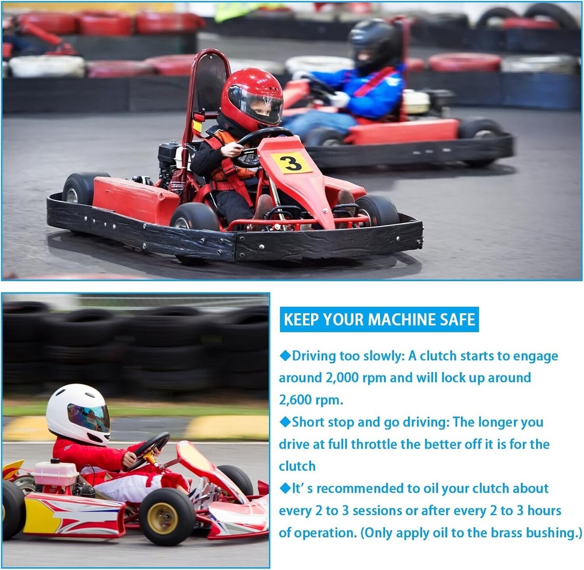 This go kart clutch and chain fit for Go Kart Yerf-Dog karts, Fit for Tecumseh, for Baja MB165 and MB200 Minibike, including for Baja Heat, for Mini Baja; for Baja Warrior. NOTE: 1, Apply lubricating oil before use; 2, After installation, start it 3-5 times for running-in