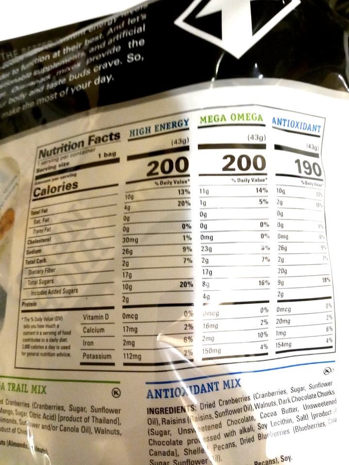 Antioxidant Mix: raisins, walnuts, dark chocolate, blueberries, pecans, cranberries
