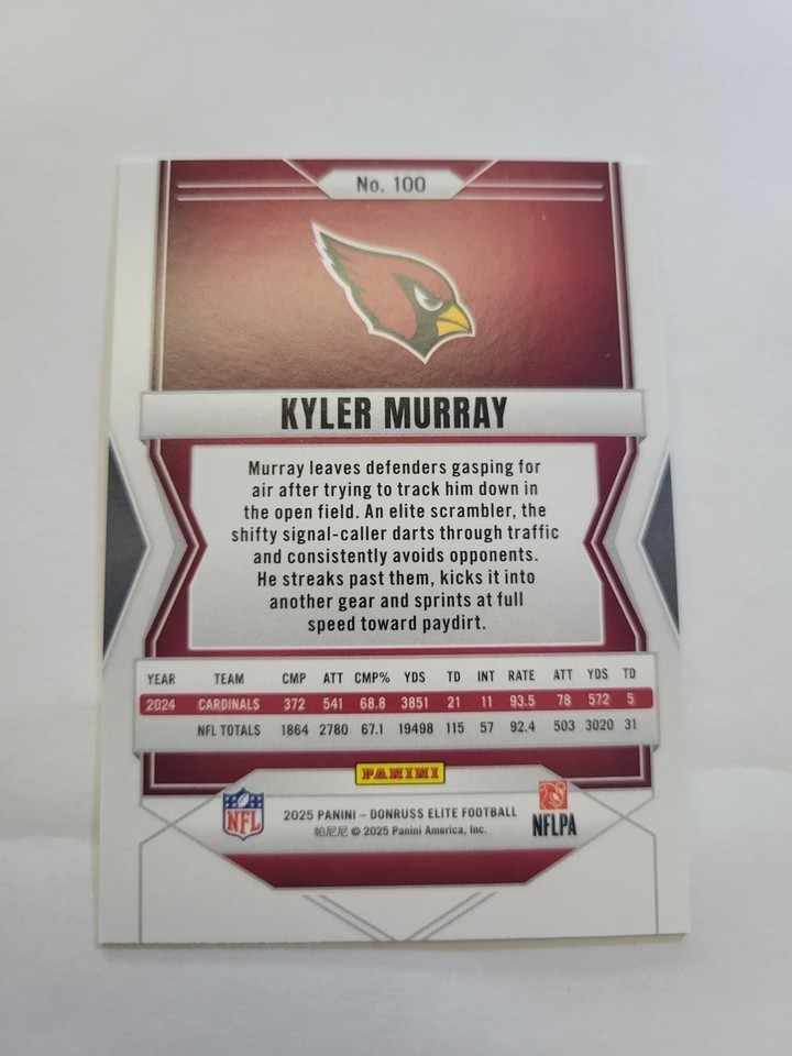Kyler Murray 2025 Panini Donruss Elite Football Card #100 Arizona Cardinals