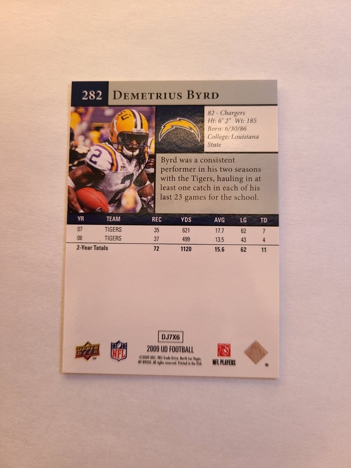 2009 Upper Deck #282 Demetrius Byrd RC LSU Tigers San Diego Chargers. Condition is Ungraded. Shipped with Standard Envelope for eligible items up to $20.