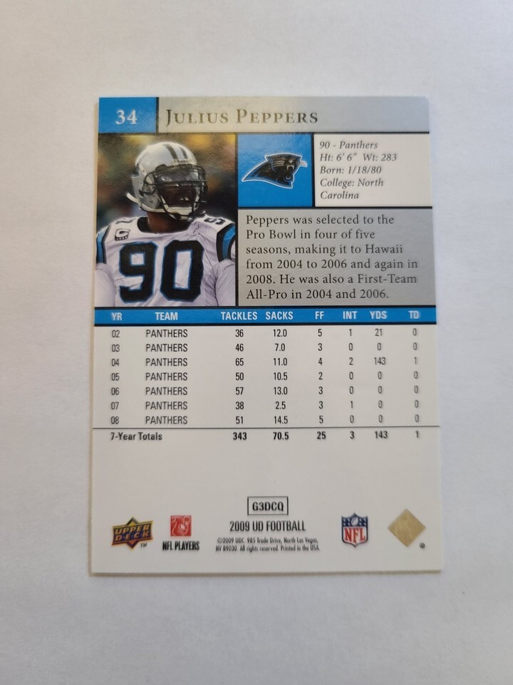 2009 Upper Deck Julius Peppers #34 Carolina Panthers. Condition is Ungraded. Shipped with Standard Envelope for eligible items up to $20.