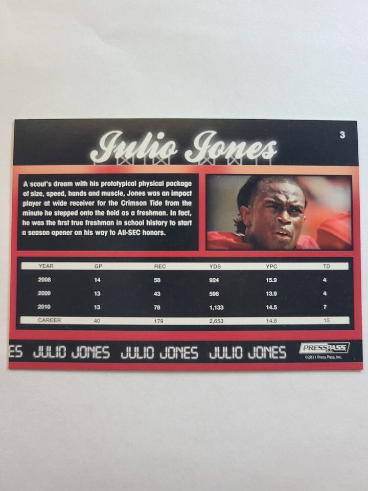2011 Press Pass Blue Reflectors Julio Jones #3 Rookie RC. Condition is Ungraded. Shipped with Standard Envelope for eligible items up to $20.