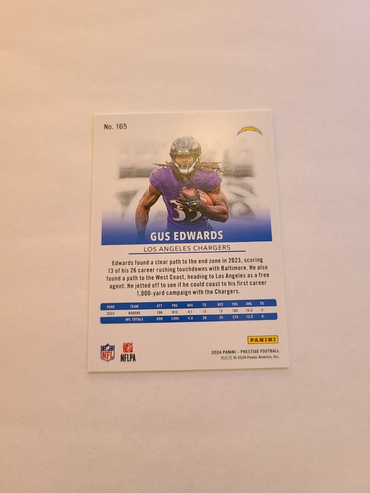 2024 Panini Prestige - -#165 Gus Edwards-Los Angeles Chargers. Condition is Ungraded. Shipped with Standard Envelope for eligible items up to $20.
