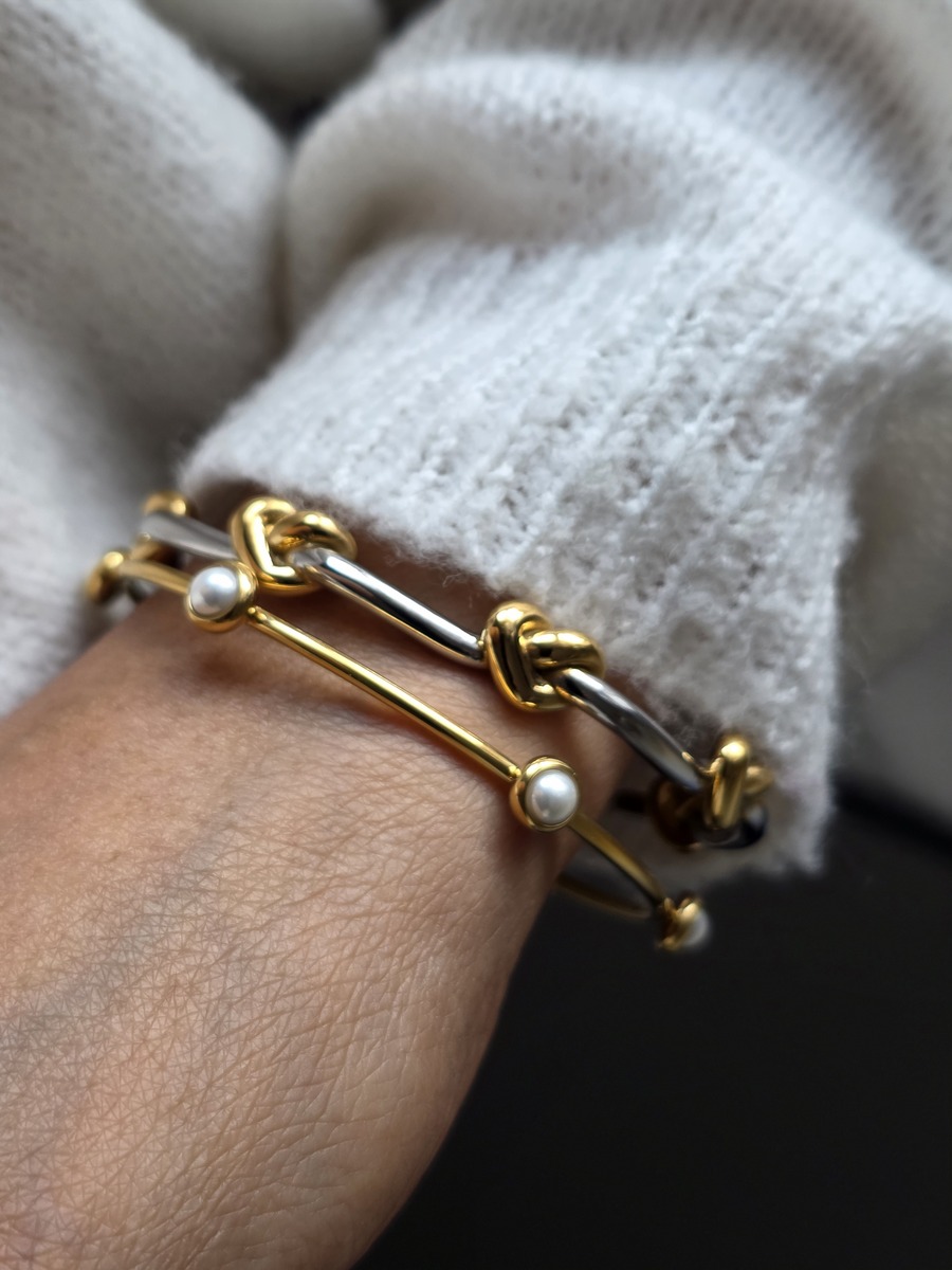 ITEM DETAILS: Sterling silver plated over 98% Stainless Steel 2% Titanium steel 18K Gold PVD plated Tarnish free waterproof sweat proof jewellery 16cm wide, can be adjusted up to 18.5cm Presented in our signature branded packaging, ready to gift or cherish. 99% Certified Eco-friendly packaging. Gift Wrapping Available