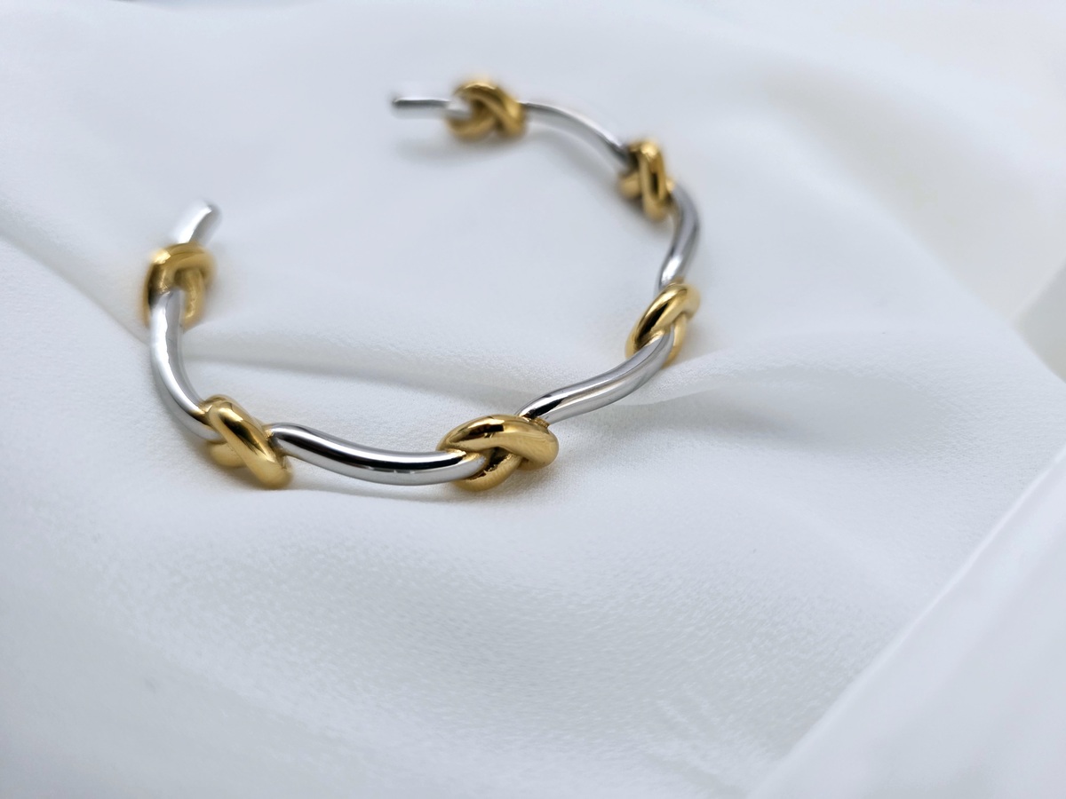 Heart Knotted Two tone Waterproof Cuff Bracelet 18K Gold Stainless Steel