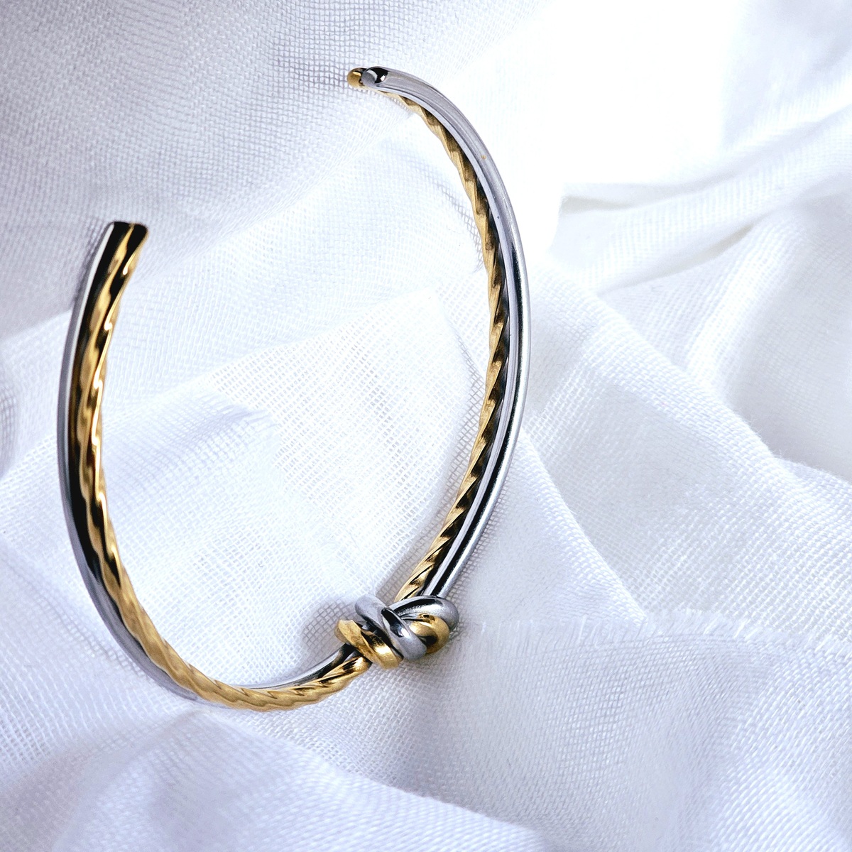 Hammered & Knotted Two-toned Cuff Bracelet 18k Gold Sterling Silver waterproof