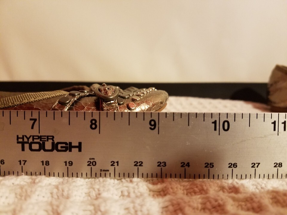 Our shoes are 100 percent Authentic STEVE MADDEN, we take pride in selling some of the best Brands known in the Industry, Each Shoe have a size Label in each one of them , However we go one extra step and provide exact measurements in our pictures, we provide measurements for the bottom of the shoes as well from top to bottom and side to side. We will list every defect in our Auction. Each Shoe has been Inspected and although some have minor issues we pride our sales on showing every Inch in our pictures. Thank you for looking at our Store, we have sold over 2000 Shoes, and have feedback from our customers to back up our quality, please take a quick minute to check out our feedback for the Shoes we have sold. If we miss any defects, I promise you we wont miss it in our pictures, we take pride in taking 12 pictures of every angle of every Shoe.